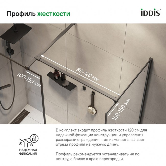 Душевая перегородка Iddis Slide 120 см. профиль черный, стекло прозрачное купить с доставкой. 100% Оригинал. Гарантия!