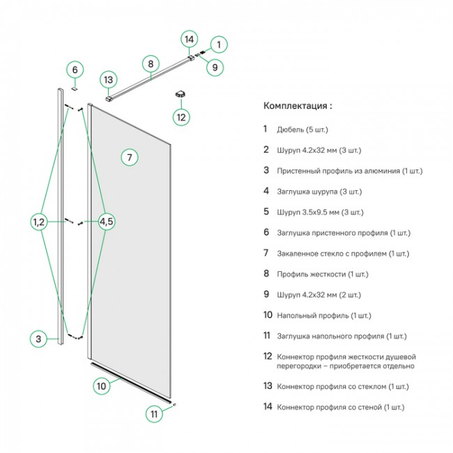 - Прозрачное закаленное стекло толщиной 8 мм выдерживает случайные удары, что делает перегородку надежной и безопасной в каждодневном использовании.