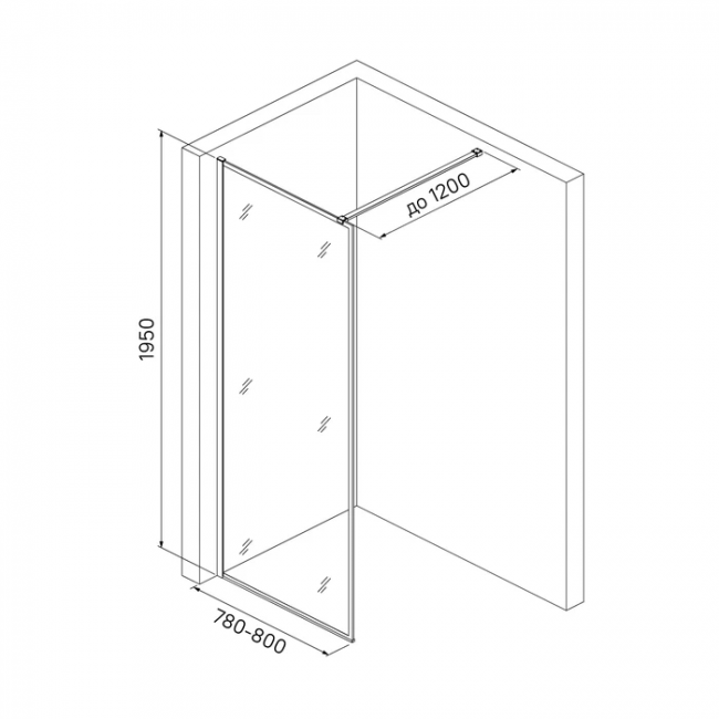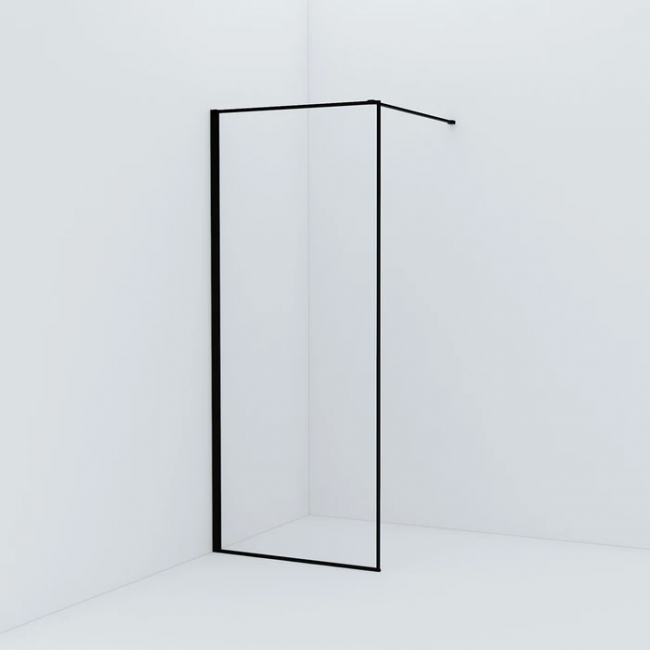 Душевая перегородка Walk In для ванной комнаты, 780-800х1950мм, регулируемый размер, позволяющий сгладить неровность стен (20мм). Черный матовый цвет, алюминиевый профиль, прозрачное закаленное стекло 8мм.