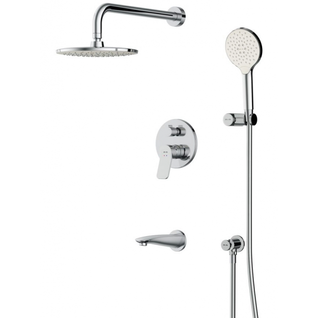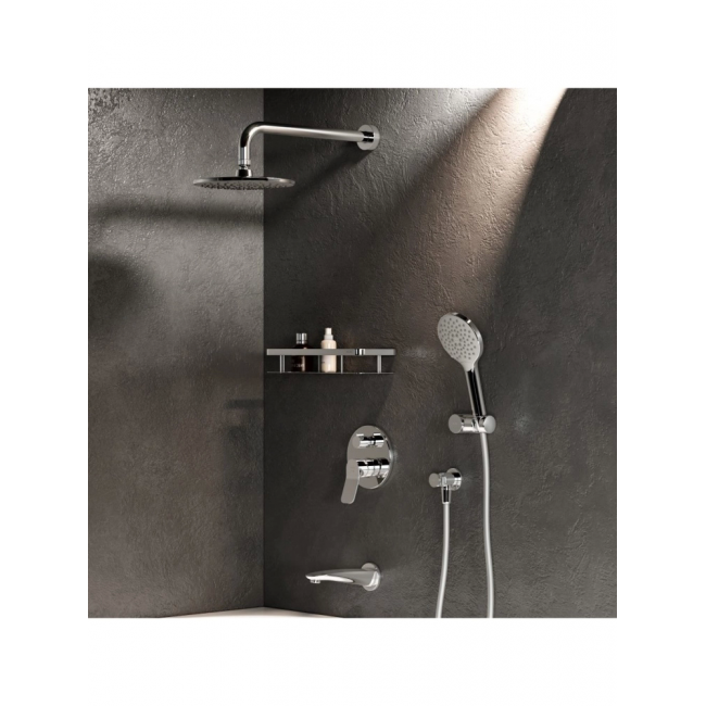 Набор встроенного оборудования X-Joy - идеальное решение для вашей ванной комнаты. Встроенный механизм освобождает ванную комнату от лишних деталей, превращая пространство в идеальное место для себя. Набор включает в себя: верхний тропический душ 22 см, ручной душ, держатель ручного душа, излив и смеситель.