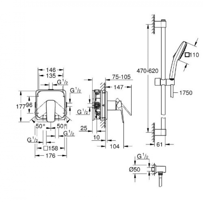 GROHE Cubeo также заботится об экологии: технология экономии воды GROHE ограничивает потребление до 7,4 л/мин (при 3 бар), не снижая производительность. В комплект входят душевая штанга длиной 600 мм с регулируемым держателем, шланг длиной 1750 мм и подлючение для душа.