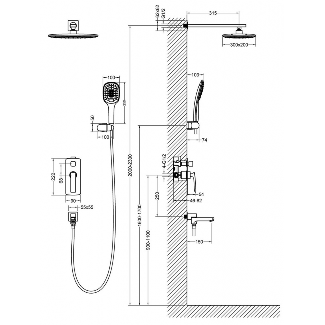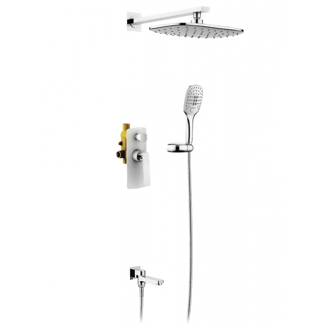 Встраиваемая душевая система Helmi 4099, предназначена для монтажа в полой или твердой стене. Основные преимущества встроенной системы: коммуникации, крепления и механизмы спрятаны в стену и видны только декоративные элементы. Установить встроенную систему можно в любом месте. Использовать такой смеситель очень удобно, регулировка температуры и напора воды осуществляется одним рычагом. Регулируя напор воды в режиме "тропический душ", можно получить массажное воздействие различной интенсивности. Переключение режимов подачи воды (тропический душ, излив) осуществляется поворотом керамического дивертора. Для переключения потока воды с излива на ручную лейку нужно повернуть излив к стене.