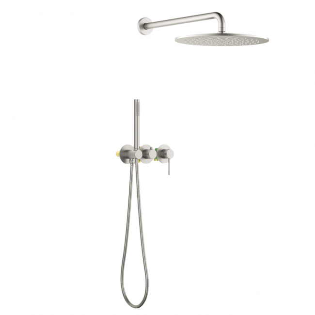 Цвет "матовый никель" является новым фаворитом для многих дизайнеров интерьеров. Этот цвет универсален, подходит практически для любой ванной комнаты и понравится всем, кто желает немного "мягкости" в дизайне ванной.Встраиваемая душевая система Saona 2349, предназначена для монтажа в полой или твердой стене. Основные преимущества встроенной системы: коммуникации, крепления и механизмы спрятаны в стену и видны только декоративные элементы. Установить встроенную систему можно в любом месте. Использовать такой смеситель очень удобно, регулировка температуры и напора воды осуществляется одним рычагом. Регулируя напор воды в режиме "тропический душ", можно получить массажное воздействие различной интенсивности. Переключение режимов подачи воды (тропический душ, ручная лейка) осуществляется поворотом керамического дивертора. Сложностей монтажа не возникает при установке элементов душевой системы опытным сантехником. Внимательно изучите инструкцию по монтажу.Цвет "матовый никель" прост в уходе, не оставляет отпечатков пальцев и разводы от воды.