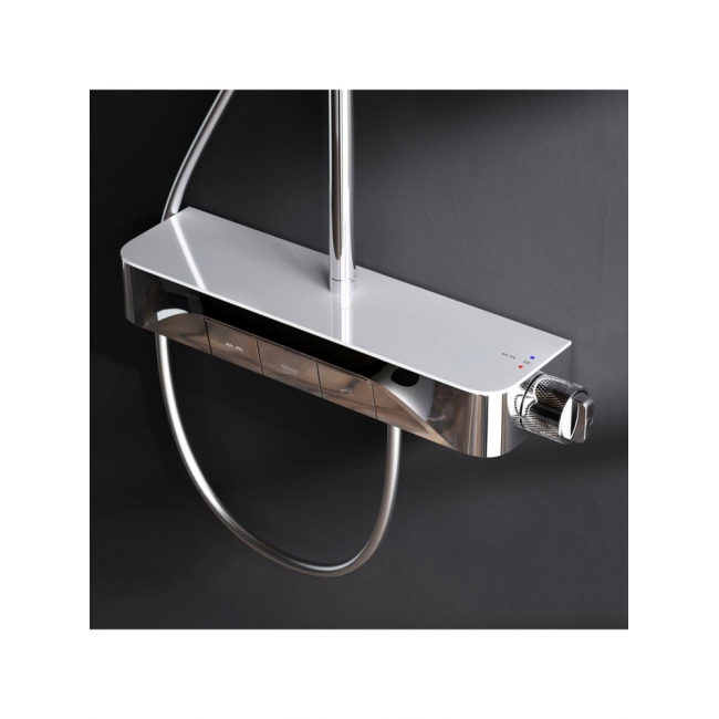 Интуитивно понятное управление: всего одна удобная ручка для настройки температуры и потока воды. Благодаря специfльно спроектированной эргономичной ручке вы можете управлять душевой системой даже с мыльными руками. Переключение потоков воды осуществляется нажатием клавиши.