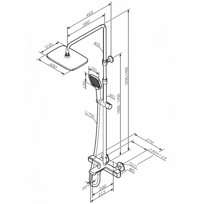 | Размер верхнего душа, мм | 300х210 |
