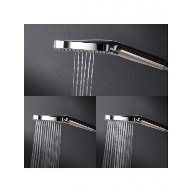 Продуманные детали для вашего удобства: телескопическая штанга регулируется по высоте обеспечивая комфорт для людей любого роста. Трендовая прямоугольная форма увеличенный размер леек и 3 режима ручного душа подарят вам ощущения настоящего домашнего SPA.