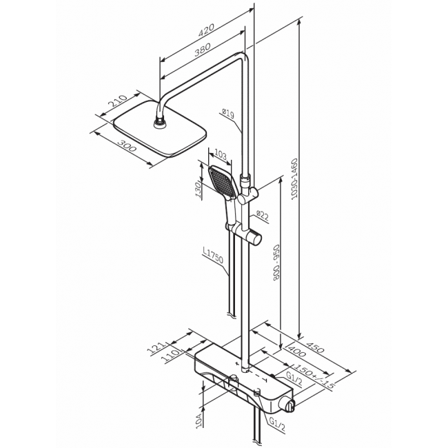 | Размер верхнего душа, мм | 300х210 |