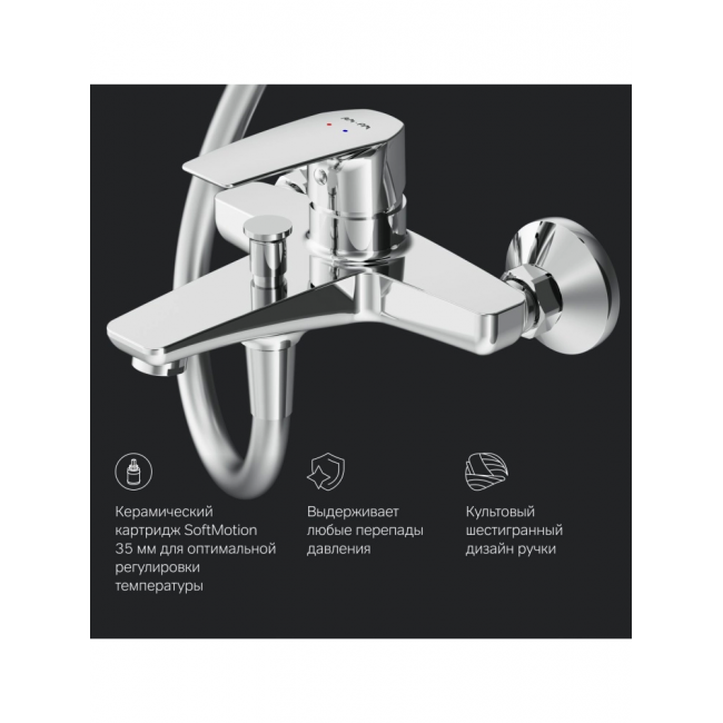 керамический картридж SoftMotion 35 мм обеспечивает оптимальную регулировку температуры, а также позволяет выдерживать любые перепады давления;