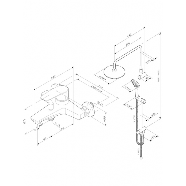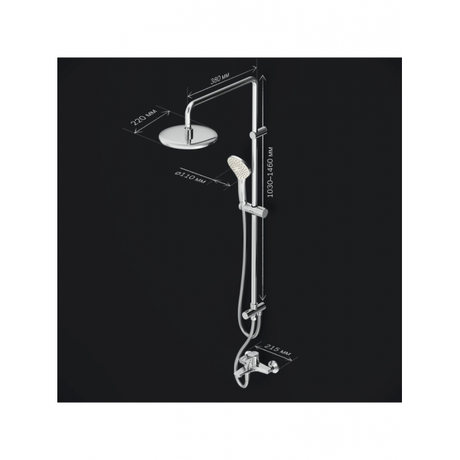 Готовое решение душевой системы со смесителем от бренда AM.PM коллекции Gem. Цвет душевой системы и смесителя - хром. Размер душевой системы (Ш/Г/В): 220x552x1030-1460 мм. Размер смесителя (Ш/Г/В): 215x197x103 мм. Длина душевого шланга - 1750 мм. Размер ручного душа - 110 мм. Диаметр верхнего душа - 220 мм. Материал - латунь, ABS-пластик, нержавеющая сталь, ПВХ.