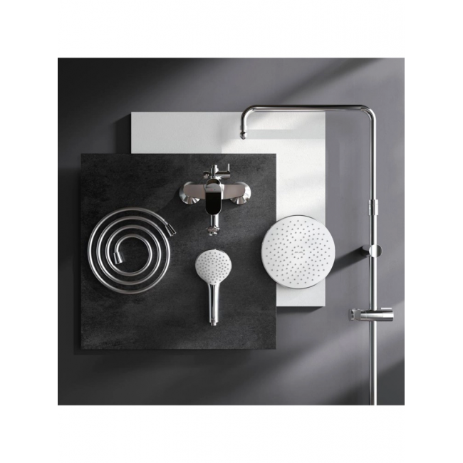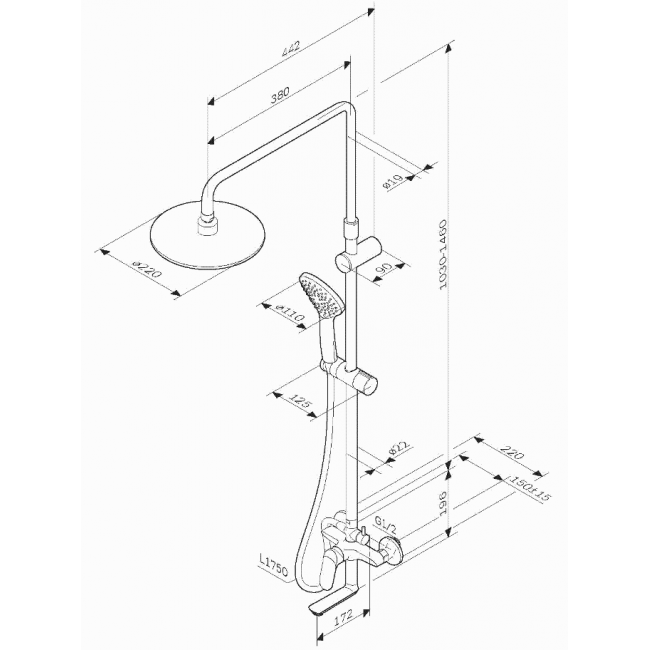 Диаметр душевых леек (верхний душ 220 мм и ручной душ 110 мм) позволит ощутить преимущества тропического душа даже в стандартной ванной тогда как увеличенная длина шланга 1750 мм обеспечит свободу движений во время принятия душа. Продуманные детали для удобства использования: телескопическая поворотная штанга регулируется по высоте в диапазоне от 1030 до 1460 мм обеспечивая комфорт для людей любого роста.