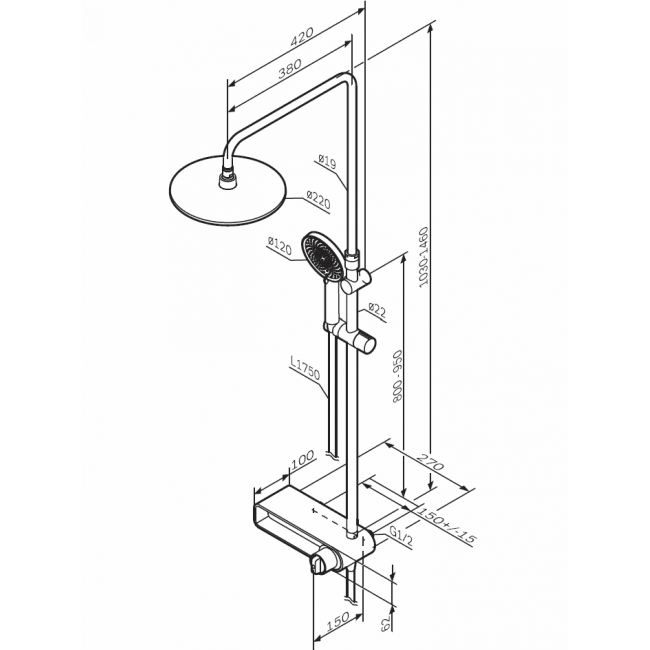 | Размер верхнего душа, мм | 220 |