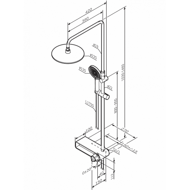 | Размер верхнего душа, мм | 220 |
