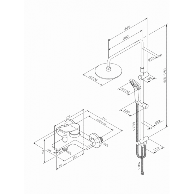 | Размер верхнего душа, мм | 220 |