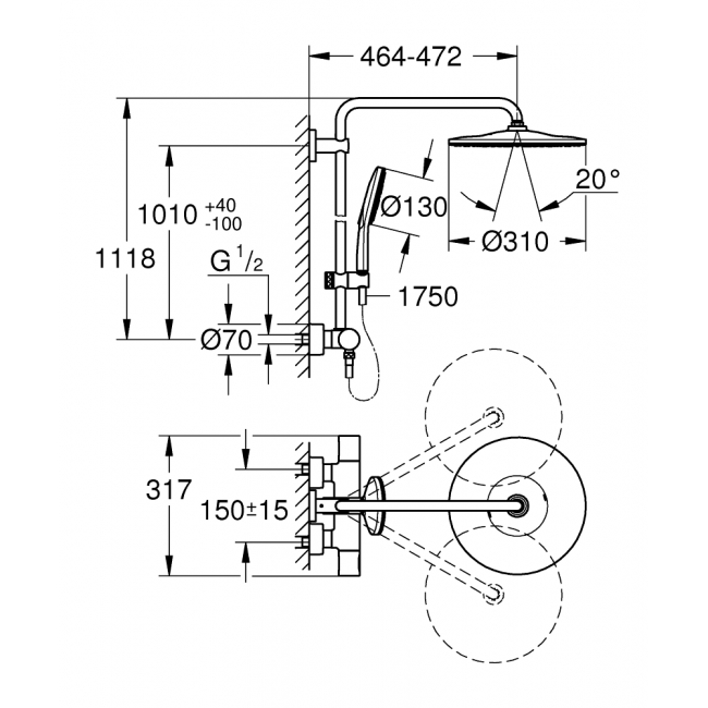 | Размер верхнего душа, мм | 310 |