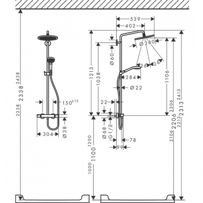 Душевая стойка Hansgrohe Croma 26890140 бронза купить с доставкой. 100% Оригинал. Гарантия!