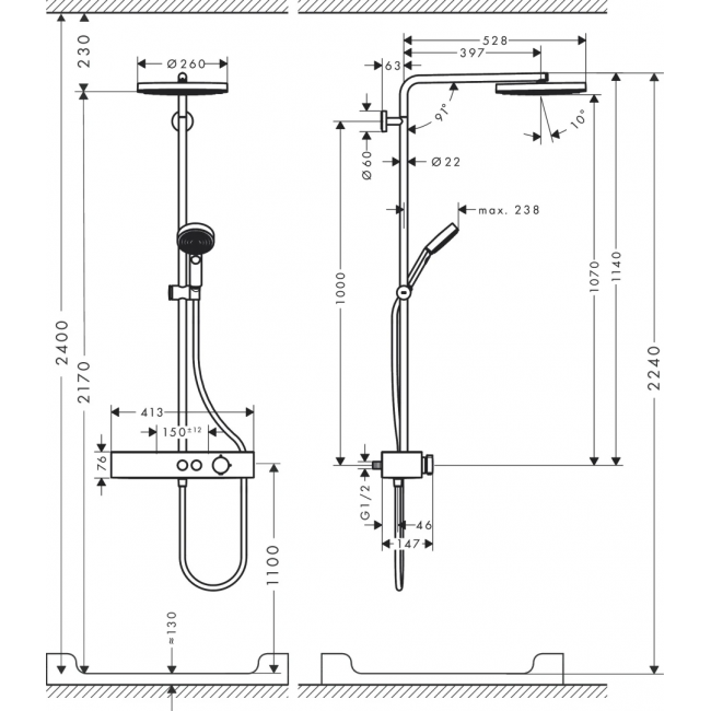 | Размер верхнего душа, мм | 260 |