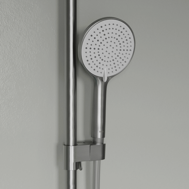 Стильная функциональная душевая система Aiger, где удачно сочетается актуальный современный дизайн и трендовый оттенок матового хрома с брашированным покрытием. Тонкая удлиненная ручка добавляет смесителю изящества и комфорт в управлении. Штанга верхнего душа регулируется по высоте 113-145 см в момент установки смесителя, что позволяет в дальнейшем с комфортом принимать душ всей семье. Поток воды переключается поворотным керамическим дивертором на стойке – он повторяет дизайн ручки, выглядит стильно и элегантно. Излив удлиненной формы в общем стиле смесителя, можно повернуть параллельно стене. Скрытый силиконовый аэратор добавляет эстетики и легко чистится от загрязнений. В комплекте гибкий шланг из ПВХ 1,5 м, верхняя (d=228 мм) и ручная (3 режима, d=116 мм) лейки из коллекции Optima Home в тон. Покрытие устойчиво к коррозии, появлению царапин, сколов и потускнению. На протяжении многих лет будет выглядеть как новое.Гарантия на смесители IDDIS® – 10 лет, на душевые аксессуары – 3 года.