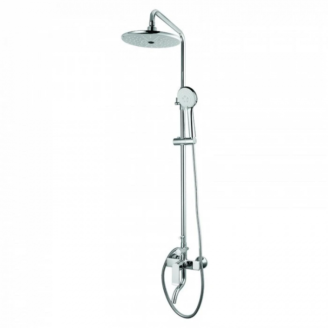 Смеситель для ванны с верхним душем, латунь, цвет - хром, керамический картридж Softap 35 мм, силиконовый аэратор Neoperl; верхняя лейка - 3 режима, диаметр 232 мм, ABS-пластик; ручная лейка - 3 режима, диаметр 102мм, ABS-пластик; держатель для ручной лейки - ABS-пластик; 3-х режимный керамический дивертор, пневматический дивертор для переключения режимов верхней лейки; шланг из ПВХ в оплетке из нержавеющей стали - 1,5 м; телескопическая душевая стойка с регулировкой высоты 895 - 1245 мм. Упаковка: кортонная коробка.