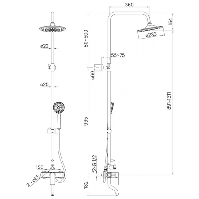 | Кол-во режимов, верхний душ | 1 |