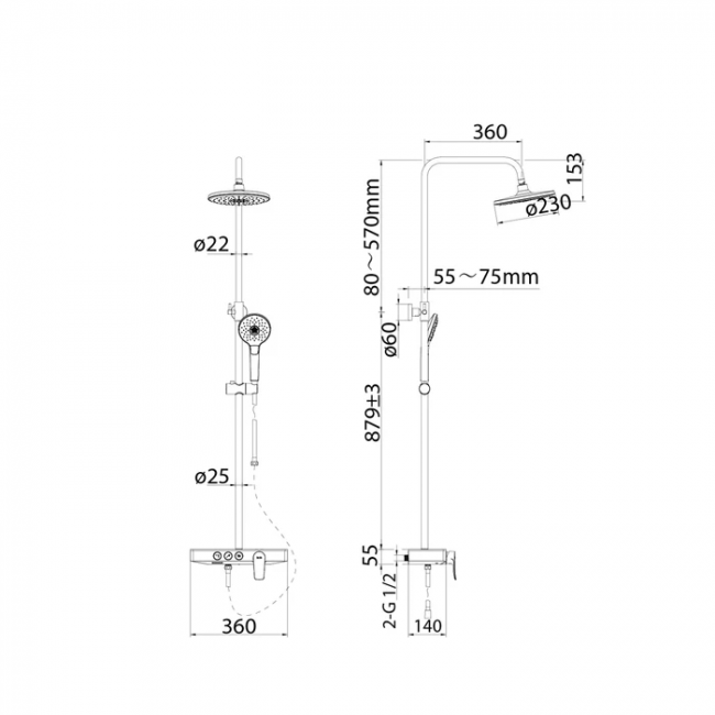 - Размер верхнего душа, см: 23