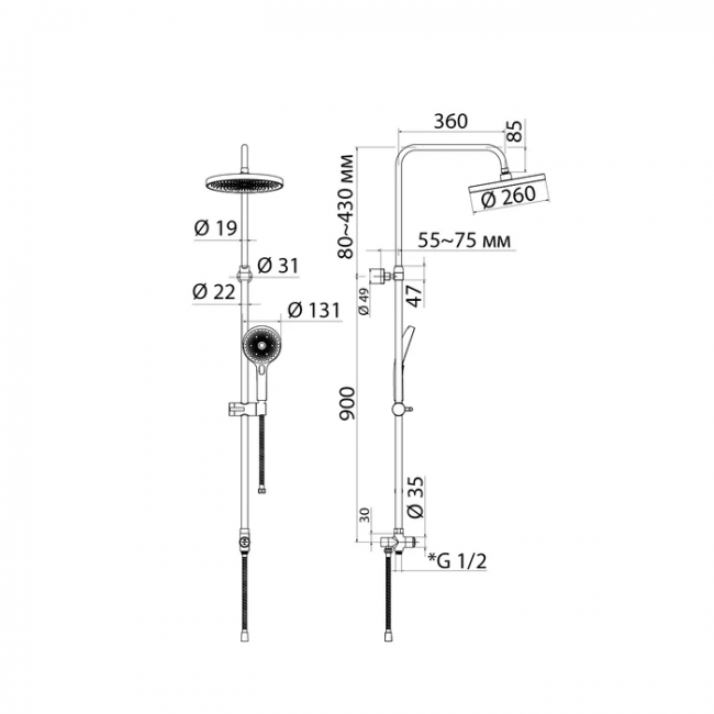 - Размер верхнего душа, см: 21.5