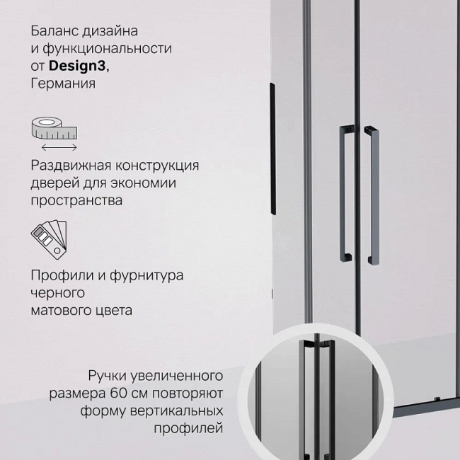 Прямолинейный симметричный воздушный: все это про дизайн душевых ограждений из коллекции Func. Короткие вертикальные профили создают ощущение невесомости а инновационные материалы гарантируют прочность и надежность конструкции. Идеальный баланс дизайна и функциональности от всемирно известной студии Design3 (Германия).