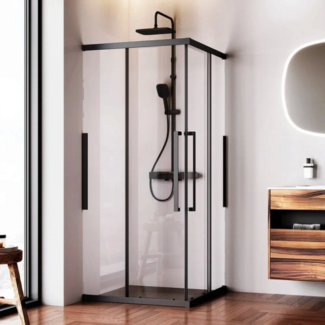 Душевое ограждение AM.PM Func 90x90 см. профиль черный, стекло прозрачное купить с доставкой. 100% Оригинал. Гарантия!