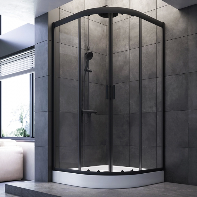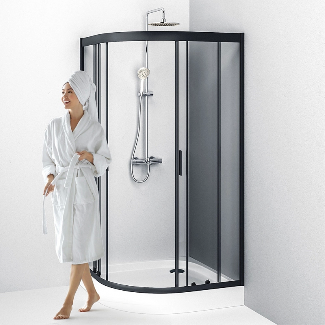Душевое ограждение AM.PM Gem 100x100 см. четверть круга, профиль черный, стекло прозрачное купить с доставкой. 100% Оригинал. Гарантия!