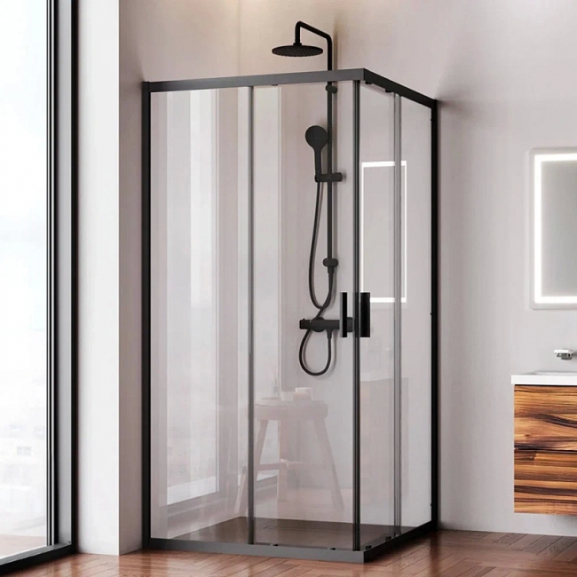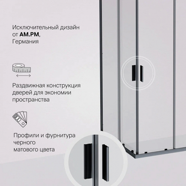 Душевое ограждение AM.PM Gem 100x100 см. профиль черный, стекло прозрачное купить с доставкой. 100% Оригинал. Гарантия!