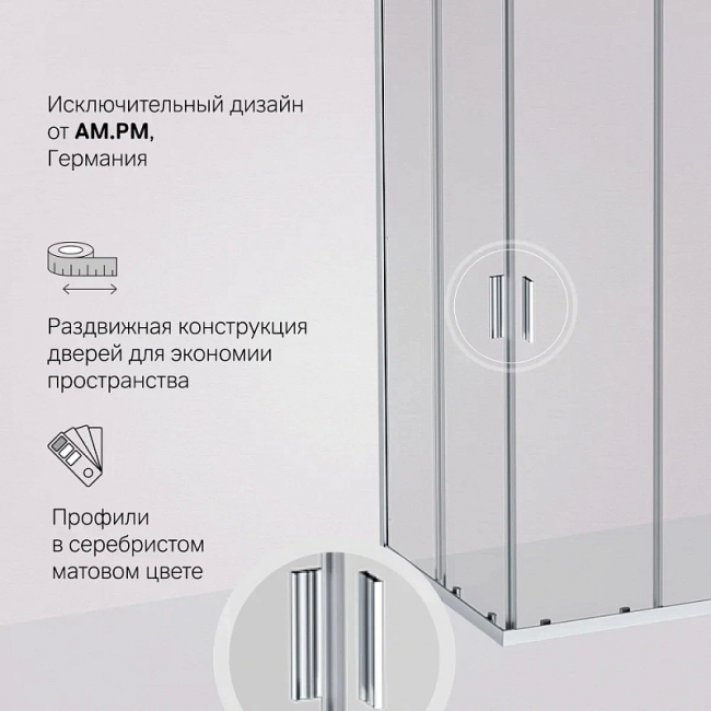 Душевое ограждение AM.PM Gem 120x90 см. профиль хром, стекло прозрачное купить с доставкой. 100% Оригинал. Гарантия!