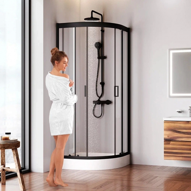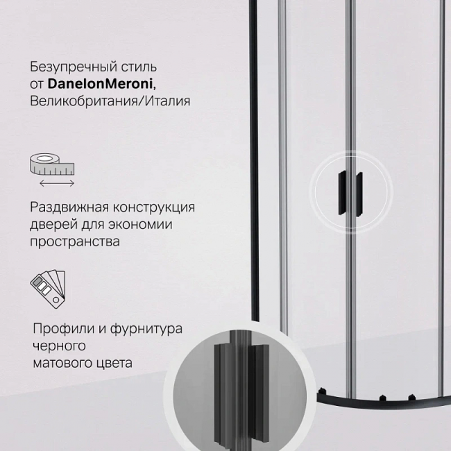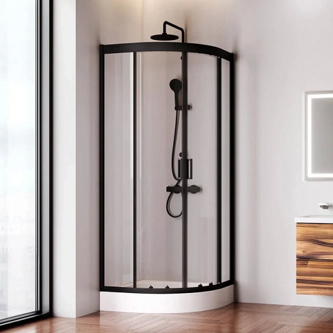 Душевое ограждение AM.PM Gem 80x80 см. четверть круга, профиль черный, стекло прозрачное купить с доставкой. 100% Оригинал. Гарантия!