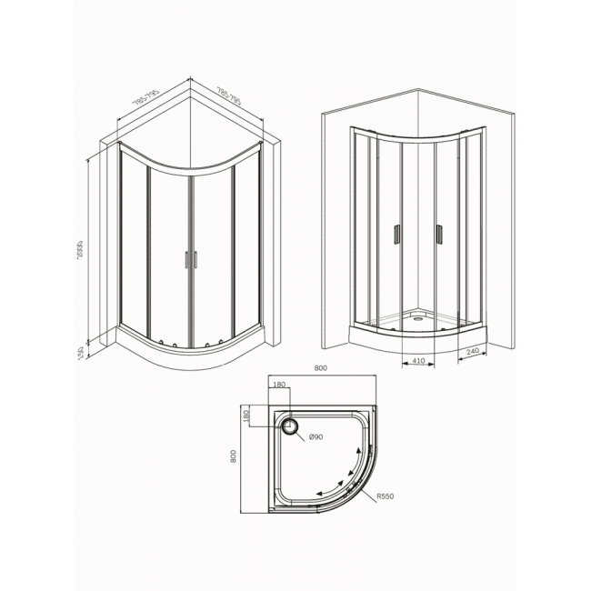 Совместимо с душевым поддоном - артикул W90T-401-080W.