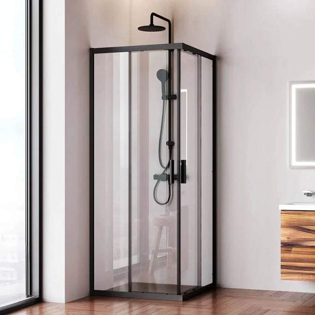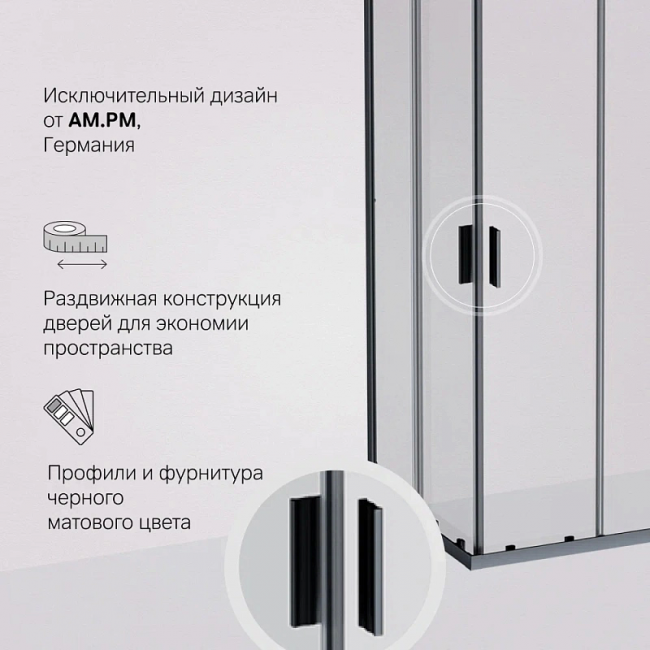 Душевое ограждение AM.PM Gem 80x80 см. профиль черный, стекло прозрачное купить с доставкой. 100% Оригинал. Гарантия!
