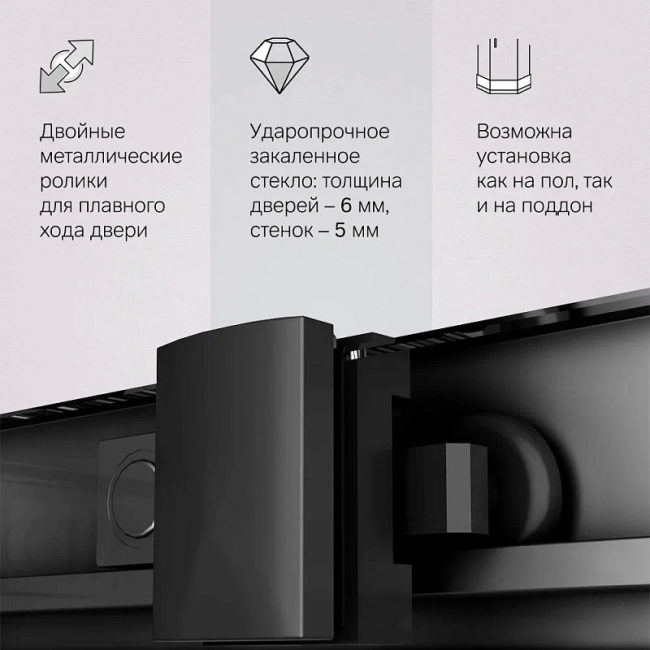 Каждая деталь соответствует высоким требованиям к качеству и эргономике. Надежные двойные металлические ролики обеспечивают плавный и бесшумный ход дверей. Нижние ролики обладают функцией быстрого снятия облегчая процесс уборки.
