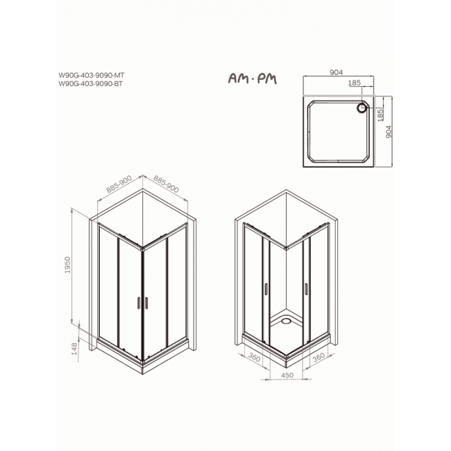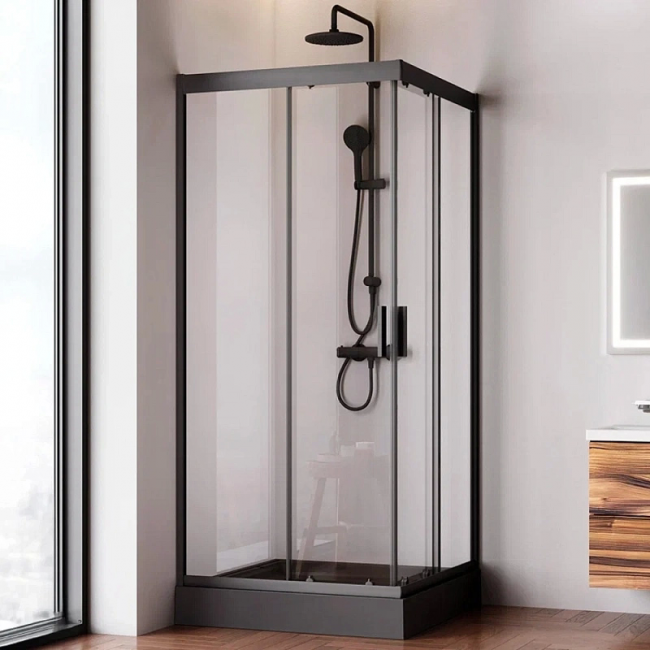 Душевое ограждение AM.PM Gem 90x90 см. профиль черный, стекло прозрачное купить с доставкой. 100% Оригинал. Гарантия!