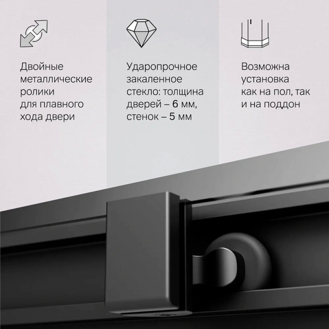 Душевое ограждение выполнено из ударопрочного закаленного стекла. Толщина фиксированного стекла 5 мм толщина стекла двери 6 мм. Профили ограждения изготовлены из надежного алюминия с премиальным анодированным покрытием. Анодирование обеспечивает равномерный насыщенный цвет и особенную стойкость к механическим повреждениям.