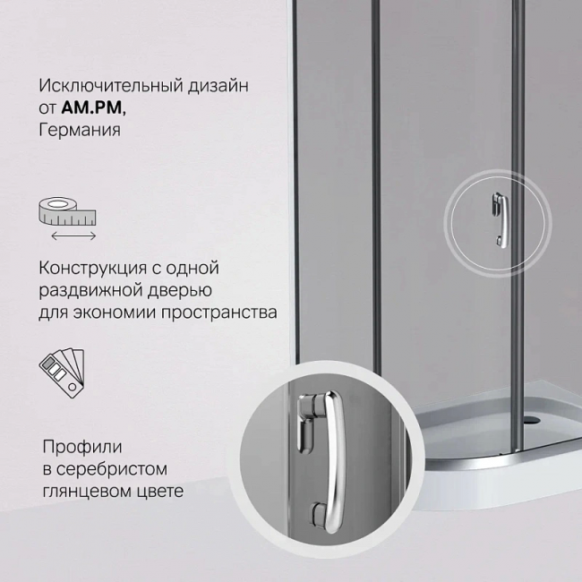 Душевое ограждение AM.PM Like 120x80 см. профиль хром, стекло тонированное купить с доставкой. 100% Оригинал. Гарантия!