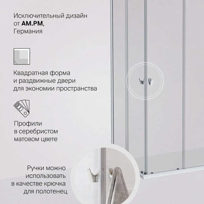 Душевое ограждение AM.PM Sunny 80x80 см. профиль хром, стекло прозрачное купить с доставкой. 100% Оригинал. Гарантия!