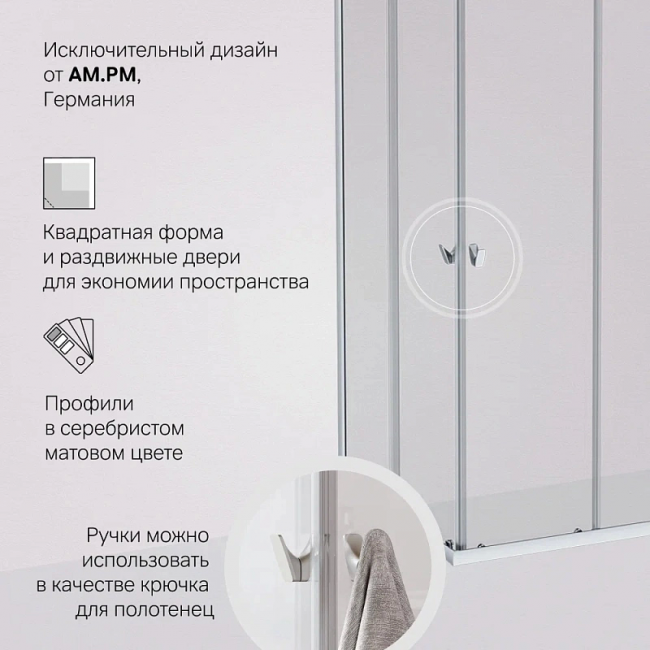 Душевое ограждение AM.PM Sunny 90x90 см. профиль хром, стекло прозрачное купить с доставкой. 100% Оригинал. Гарантия!