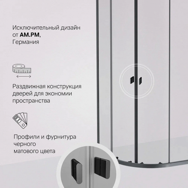 Душевое ограждение AM.PM X-Joy 80x80 см. четверть круга, профиль черный, стекло прозрачное купить с доставкой. 100% Оригинал. Гарантия!