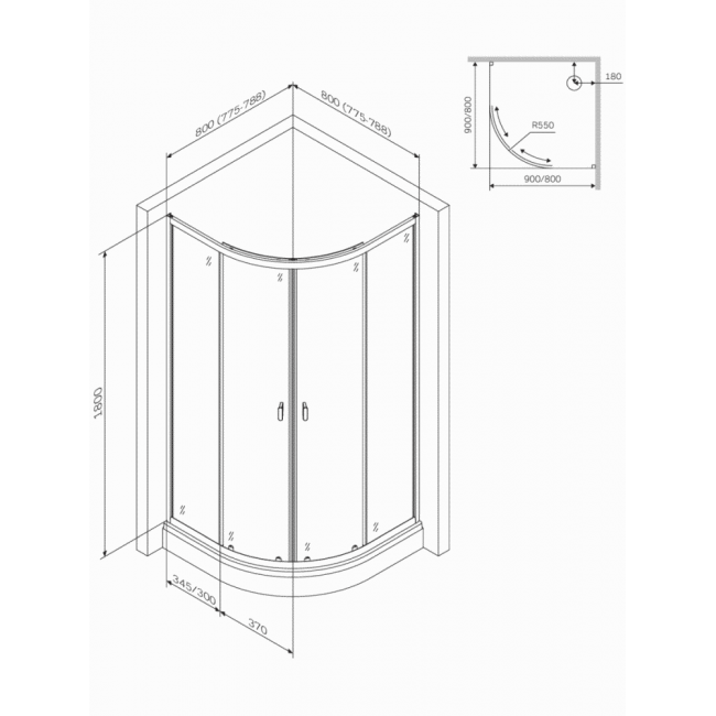 Компактный душевой уголок 80х80 см зрительно расширит пространство. Матовые профили и ручки выполненные в черном цвете предотвращают появление отпечатков пальцев рук и сохраняют поверхность чистой намного дольше. Высота профиля 1800мм с заботой о людях с высоким ростом.