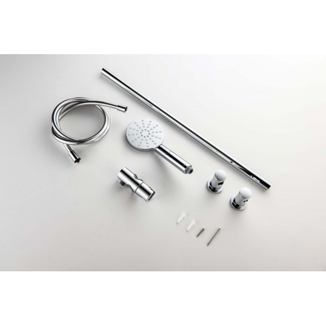 | Комплектация | 1. Душевая штанга 2. Держатель душевой лейки 3. Душевая лейка 4. Душевой шланг 5. Монтажный комплект |