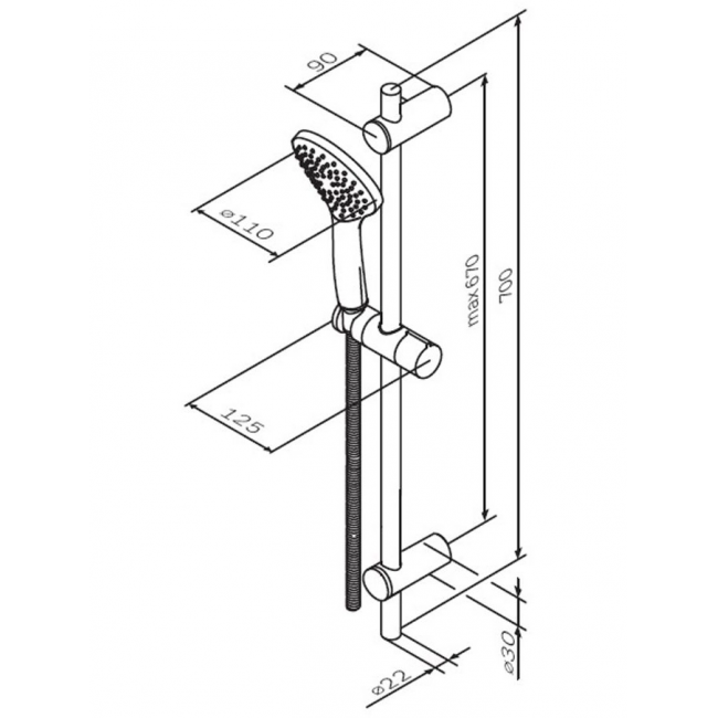 Продуманные детали для удобства использования: шарнирное соединение защищает душевой шланг от перекручивания, регулируемый в трех плоскостях держатель ручного душа, функция Rub&Clean для легкой очистки душевых форсунок. Один режим ручного душа.