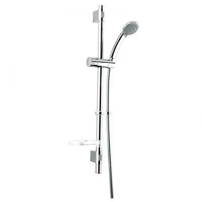 Верхний душ: нет; Количество режимов лейки: 3; Комплектация: крепления, верхнее крепление регулируется по высоте; Шланг: нержавеющая сталь; 1,5 м; cистемы Twist-Free и Double Lock; Дополнительно: мыльница; кольцо для фиксации шланга
