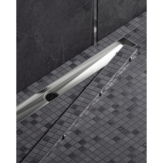 Душевой канал изготовлен из нержавеющей стали, отличающейся большой прочностью и долгой службой. Изделие отлично фиксируется в бетонную стяжку и устойчиво к воздействию агрессивных сред. Самоочищающийся сифон обеспечивает эффективную пропускную способность: 0,7 л/сек при уровне воды 10 мм над решеткой, и 0,8 л/сек - при 20 мм. Уровень гидрозатвора = 25 мм. Сухой затвор гарантирует максимальную защиту от неприятных запахов. Особая конструкция дренажного канала позволяет использование ручного инструмента для прочистки отводной трубы. Дизайн решетки создает эстетичный эффект, а в двухсторонние декоративные панели можно наклеить вашу плитку. Сталь с матовой или глянцевой поверхностями гармонично вписывается в пространство пола. Модели с PVD покрытием соответствуют цветовым решениям бренда TIMO.