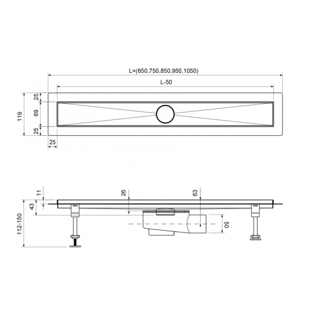 Душевой лоток TIMO Drain System 700 с двусторонней панелью "plate" под плитку DS230207/03, чёрный купить с доставкой. 100% Оригинал. Гарантия!