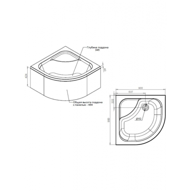 усиленный акриловый поддон на регулируемых по высоте ножках;