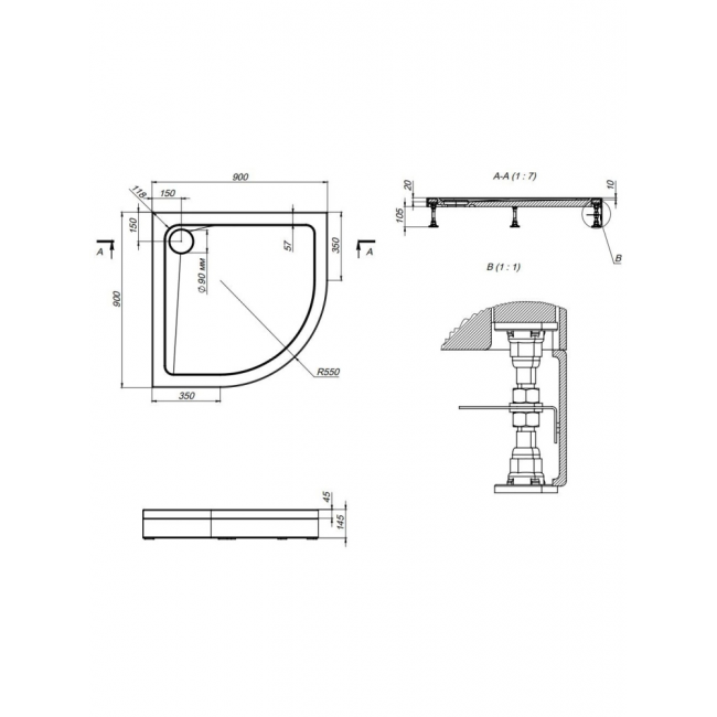 Душевой поддон от бренда AM.PM из коллекции X-Joy представлен в белом цвете. Размер (Ш/Г/В): 900x900x150 мм. Материал поддона - акрил. Форма - 1/4 круга. Поддон совместим с душевыми ограждениями: W88G-205-090BT64, W88G-205-090MT64 (приобретаются отдельно).