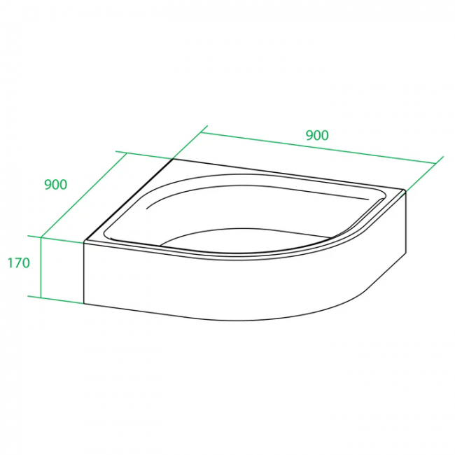 Поддон душевой, полукр. 90х90, 170мм, P29W