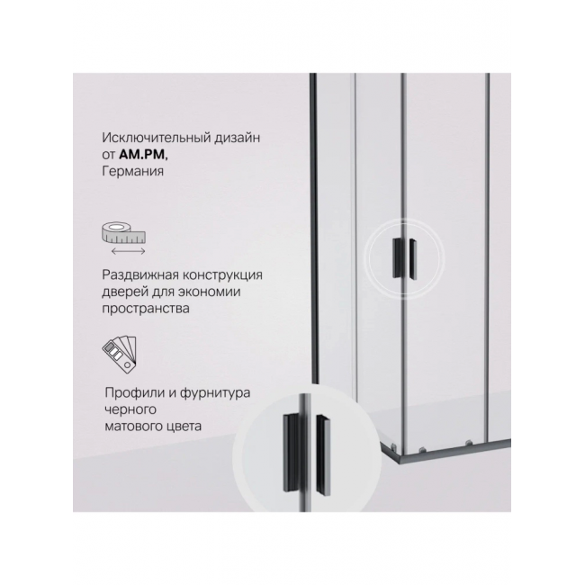 Душевой уголок AM.PM Gem 100 см. профиль черный, стекло прозрачное купить с доставкой. 100% Оригинал. Гарантия!
